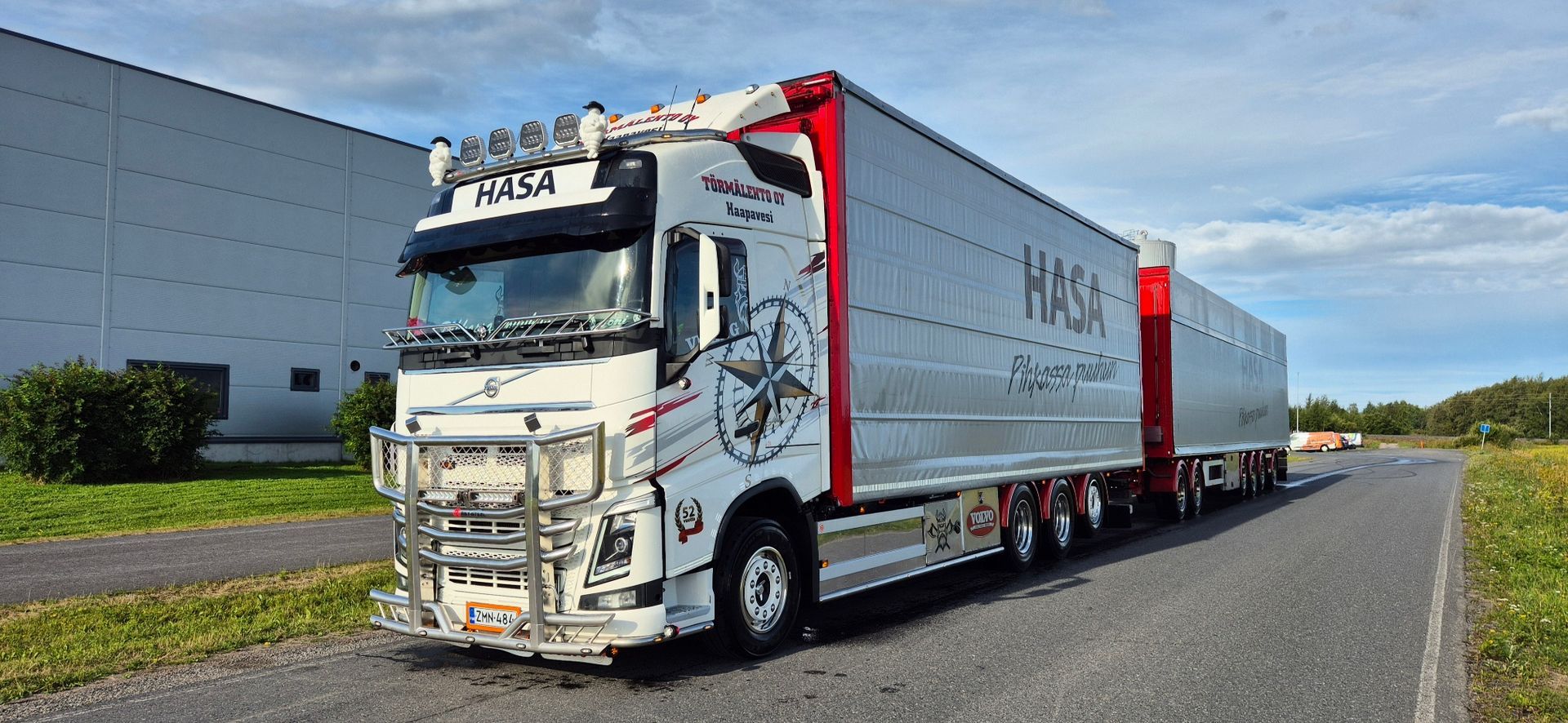 - Sora-auto, 4-akselinen Volvo Fmx 500 euro 6 vm 2014 + 4 aks kasettiperävaunu Jyki vm 2010